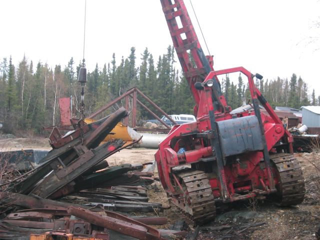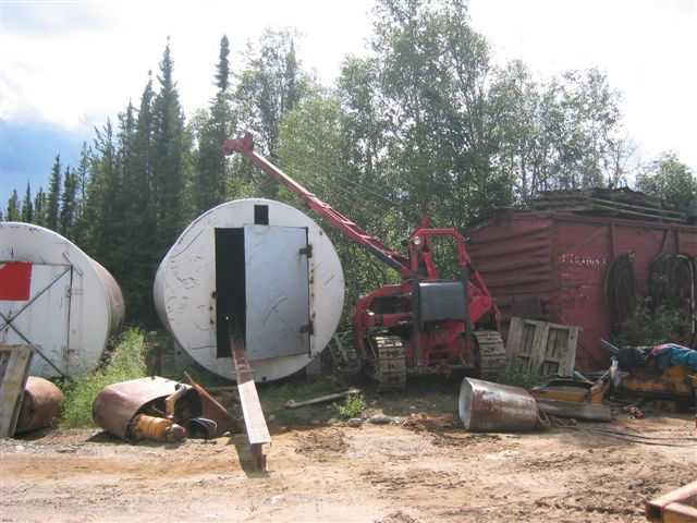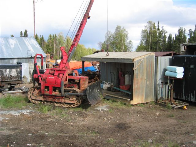 MAY 2005, THE RED CAT IS BACK IN ACTION GETTING ROTTEN WOODEN SKIS OUT OF THE STOCK PILE. SO THEY CAN BE MADE INTO ALL STEEL WINTER FREIGHTING SKIS.