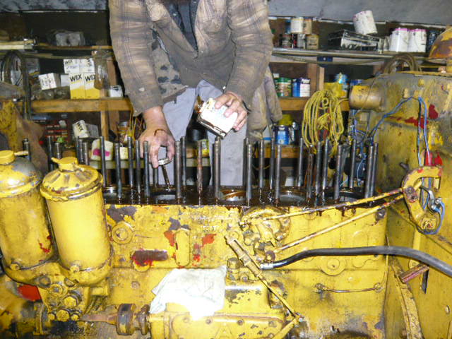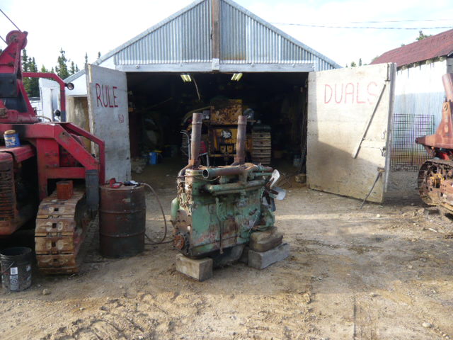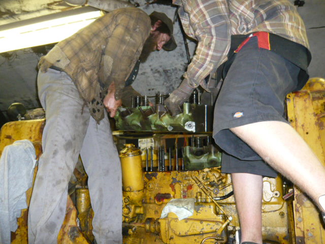 AFTER TIGHTENING THE HEADS DOWN, I LEFT THE ENGINE FOR ABOUT A WEEK BEFORE I ADDED WATER. THIS WAY EVERYTHING SEALS UP NICELY. HERE IS "DUALLY" FIRST SMOKE OUT THE "DUAL STACKS" IN OVER 22 YEARS. THANSK TO THE 922 CATERPILLAR LOADER PUSHING "DUALLY" SINCE I CAN'T START HIM ON GAS BECAUSE OF THE WELDED VALVE.