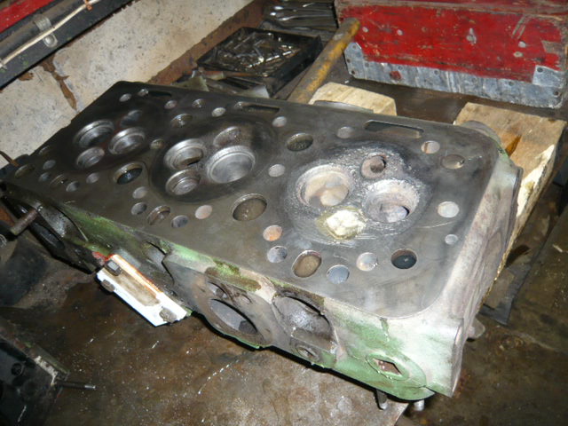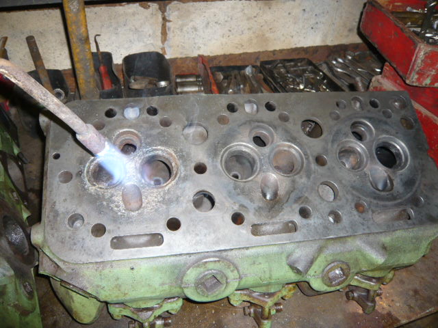 I WAS UNABLE TO GET ONE OF THE DECOMPRESSION VALVES TO SEAT SO I WELDED IT SHUT. THESE HEADS ARE ONLY TEMPORARY TO GET "DUALLY" UP AND RUNNING TO SEE WHAT OTHER SURPRISES AWAIT ME. WITH THE VALVE WELDED, I THEN DID A WATER TEST TO SEE IF THE WELD LEAKS. (THE HEAD IS FILLED WITH WATER BUT YOU CAN'T SEE THAT IN THE PICTURE, NEXT TIME I'LL ADD FOOD COLOURING TO THE WATER SO IT SHOWS UP BETTER.)