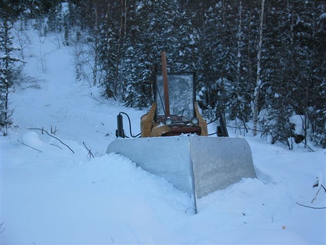 UPDATE JANUARY 2008 ON THE "KOMMUNIST KAT" IN THE LAST COUPLE OF YEARS. THE ANGLE BLADE WAS REMOVED AND A VEE PLOW FROM A 1929 LINN WAS INSTALLED SO THE LITTLE CAT COULD PUSH SOME SNOW.