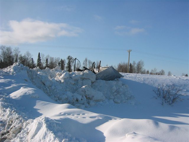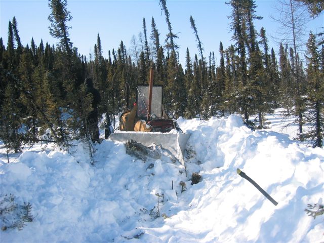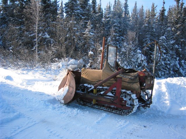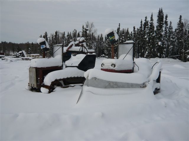 "KOMMUNIST KAT'S" RESTING PLACE FOR OVER 5 YEARS WITH THE BLOWN RIGHT SIDE FINAL DRIVE. THIS IS WHERE IT BROKE ON THE BUSH TRAIL TO THE LODGE, 90 MILES FROM LYNN LAKE MB. I USED THE "FAMOUS BLACK CAT" TO LOAD HIM ON A STONE BOAT FOR THE ADVENTURE HOME TO THE "KINGDOM".