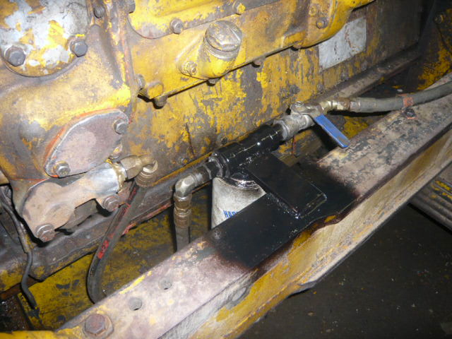 ONE OF THE UPGRADES I DO ON ALL MY CATS IS ADD THIS INLINE FUEL FILTER. IT KEEPS THE DIRT OUT OF THE FUEL TRANSFER PUMP. THE FILTER HAS A WATER SEPARATOR INCLUDED TOO. THE FUEL LINES ARE RECYCLED HYDRAULIC LINES. I USE WHAT I HAVE, LOL.