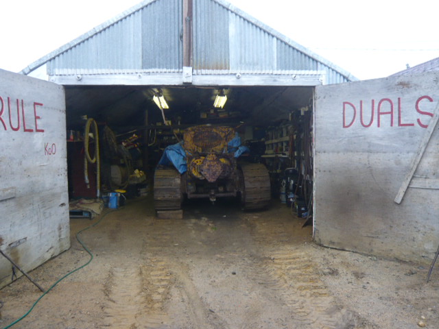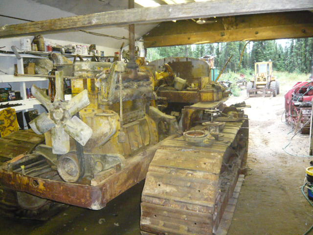THE STORY ON THIS D7 4T (serial # 4T572) KNOWN AS "JACK" IS ALREADY WRITTEN IN MY CAT TRAIN NEWSLETTERS. NOW IT IS 10 YEARS LATER AND TIME TO GET HIM UP AND RUNNING. MY DAUGHTER XENA IS THE CAMERAMAN FOR THE BIG MOVE AND I ASKED HER TO GET A PICTURE OF "JACK" IN HIS STORAGE SHED. REMEMBER SHE IS 10 YEARS OLD AND AT LEAST THE CAT IS IN PART OF THE PICTURE, LOL.