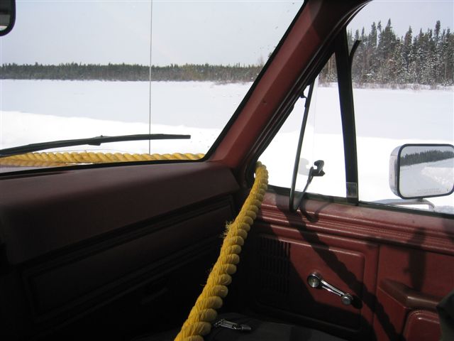 This is how I drove the Famous Black Cat 18km across Eager Lake, it was too cold to sit on the cat and beside I listen to the radio and steered with the ropes. 2004