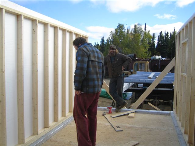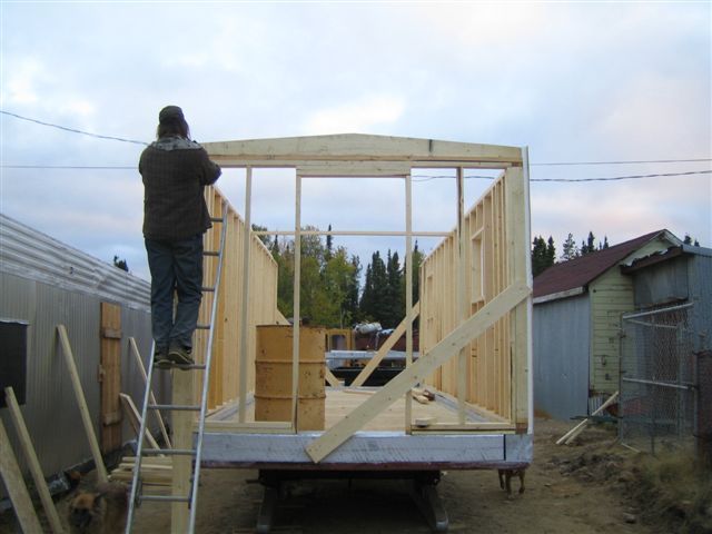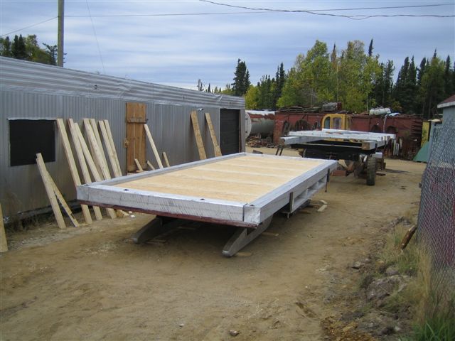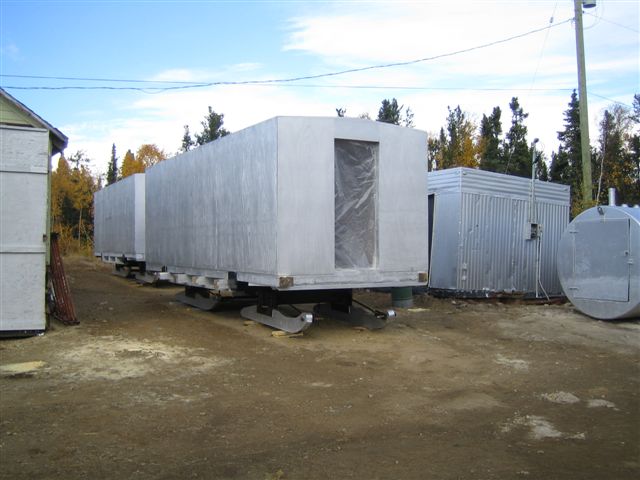 IN THE SUMMER OF 2006 WE DECIDED TO BUILD 2 CABOOSES FOR THE CAT TRAIN TOURS WHICH IS NO A BIG PROJECT EXCEPT ALL THE BUILDING MATERIALS HAD TO BE HAULED IN. THE PLYWOOD AND INSULATION CAME 1200 kms FROM THE SOUTH WHILE THE STRUCTUAL LUMBER CAME 800 kms FROM THE SOUTHWEST. IT TOOK CLOSE TO 3 MONTHS TO GET EVERYTHING HAULED IN AND THEN THE WEATHER HAD TO BE READY FOR A BUILDING BEE. ONCE WE STARTED BUILDING WE COULD NOT STOP IN FEAR OF THE RAINY SEASON THAT THE GREAT WHITE NORTH IS FAMOUS FOR. SO IT WAS A TOUGH 6 DAYS OF NON STOP BUILDING AND WE WERE ABLE TO GET IT DONE AND PAINTED BEFORE THE RAINS CAME.